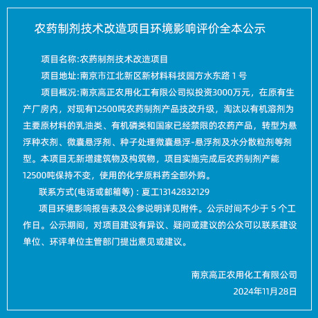 定將現(xiàn)有項(xiàng)目整體搬遷至江蘇省如東沿海經(jīng)濟(jì)開發(fā)區(qū)。搬遷完成后,將形成年產(chǎn)1000噸戊唑醇、200噸吡丙醚、500噸噻蟲啉、200噸環(huán)丙唑醇原藥的生產(chǎn)規(guī)模... |